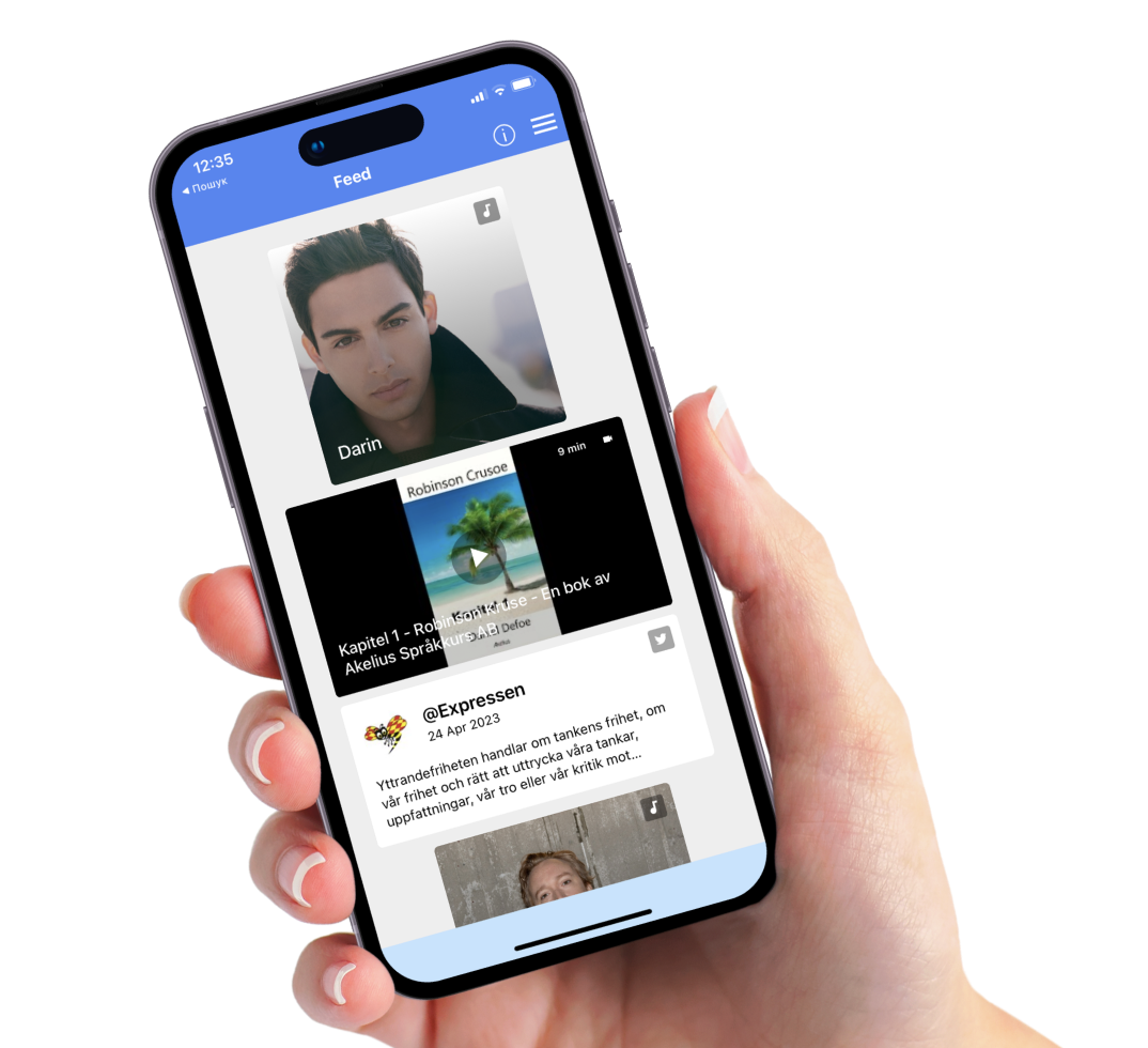 With Språkkraft Reading Coach, learning Swedish is fast, easy and efficient. You can read up-to-date news, articles and media content from the Swedish media with the help of our integrated language support to 30 languages. If there is a word you do not understand, tap on it and see the translation.